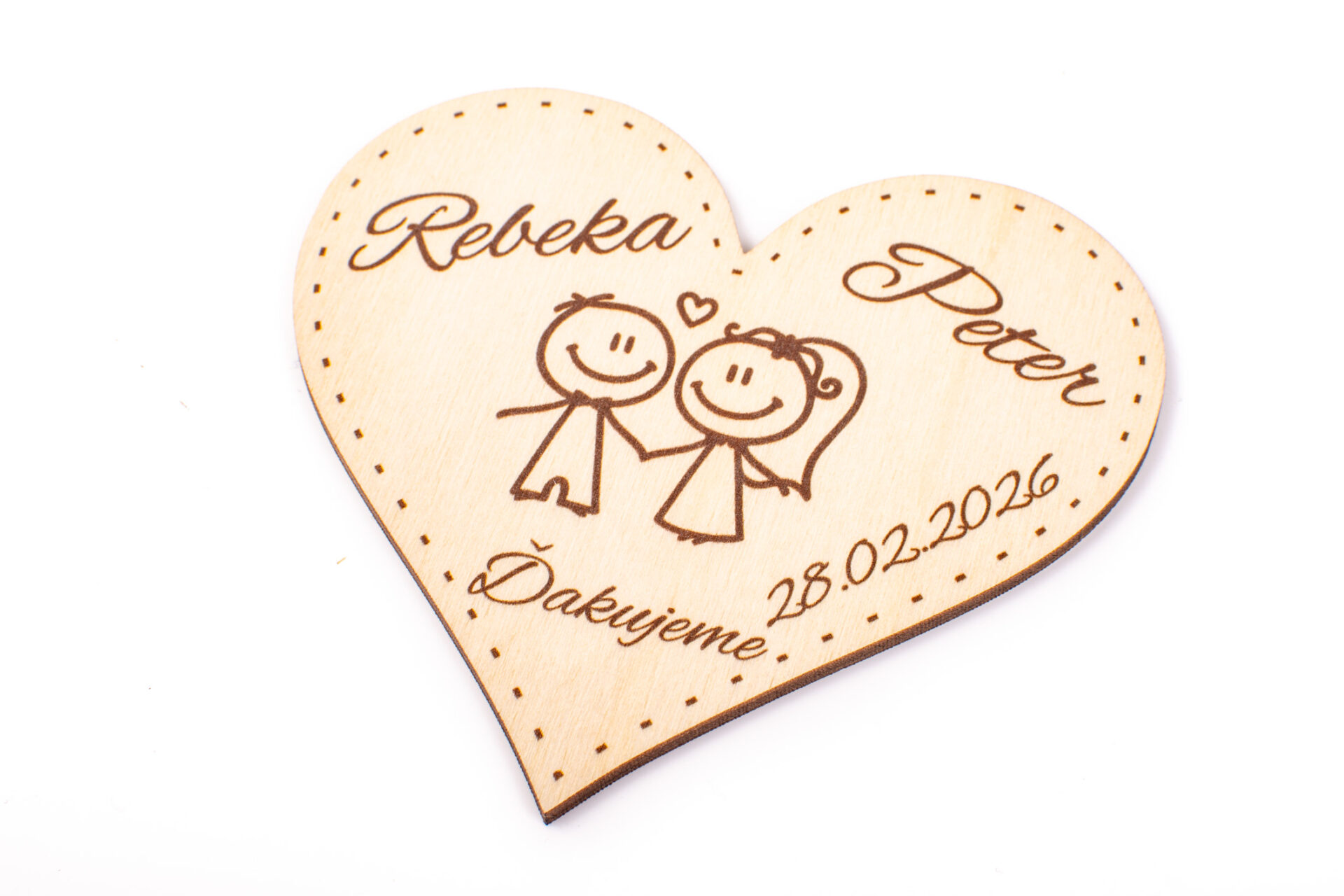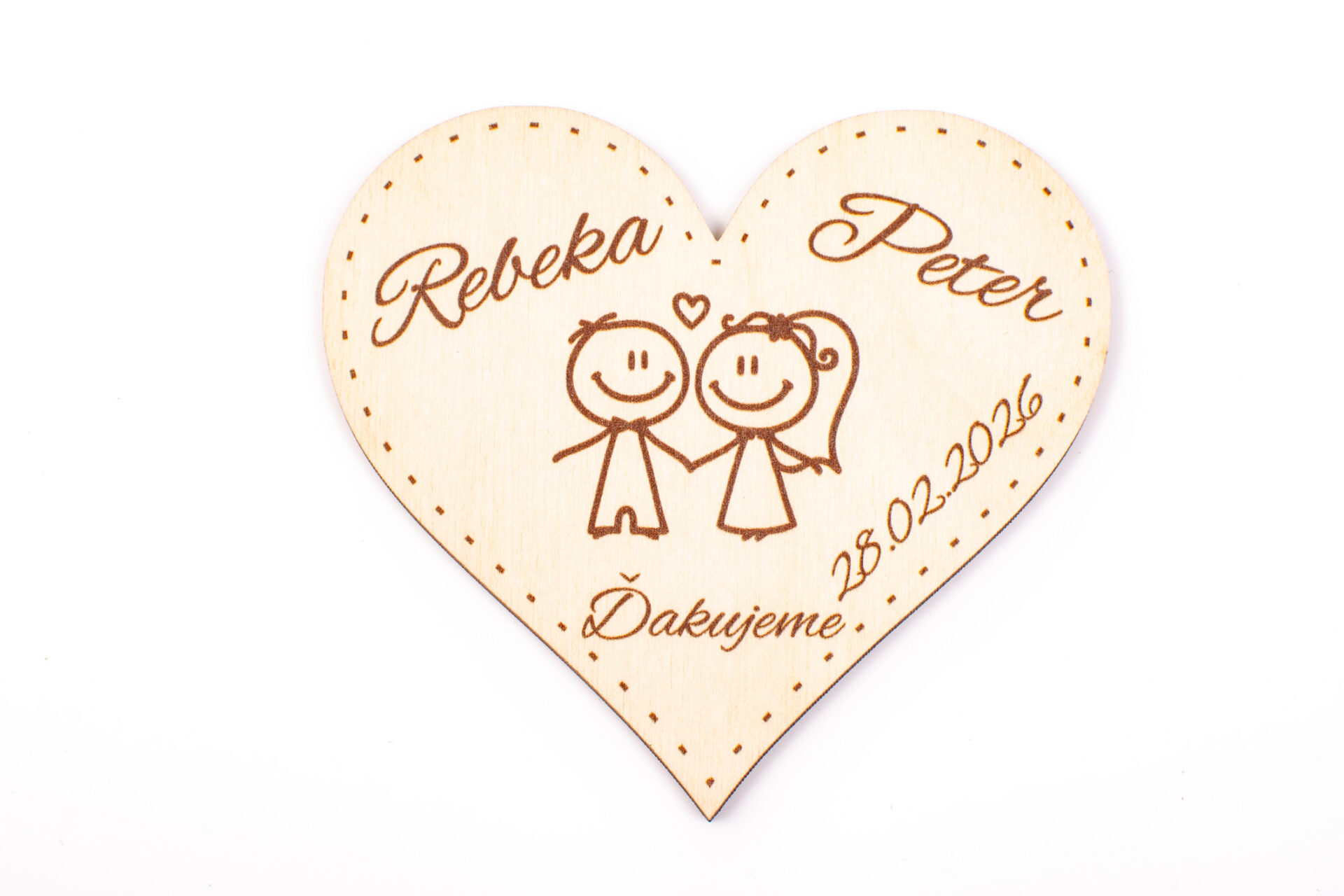 Drevená svadobná magnetka s menom a dátumom